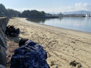 途中、散歩に来ていた男の子も飛び入り参加してくれて