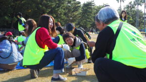 姪北公民館さん・東京海上日動の皆さんとの「アマモ場づくり」「ビーチクリーンアップ」を継続できていることを