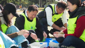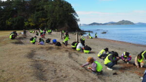 ダイバーが潜水している間も、陸上でのアマモ場づくりは続きます。