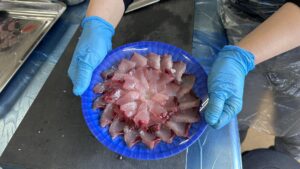 参加者は自ら直売所で選んだ魚を
